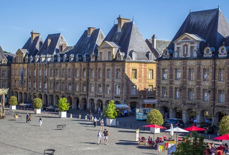 La place Ducale, sœur jumelle de la place des Vosges, déploie son architecture ocre et ardoise.