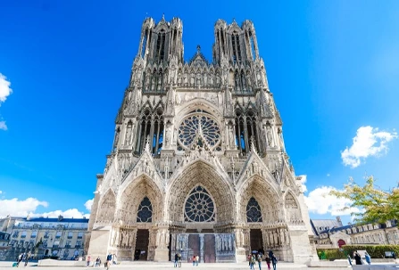 La cathédrale Notre-Dame impose sa majesté gothique au centre-ville, rappelant le couronnement des rois de France.